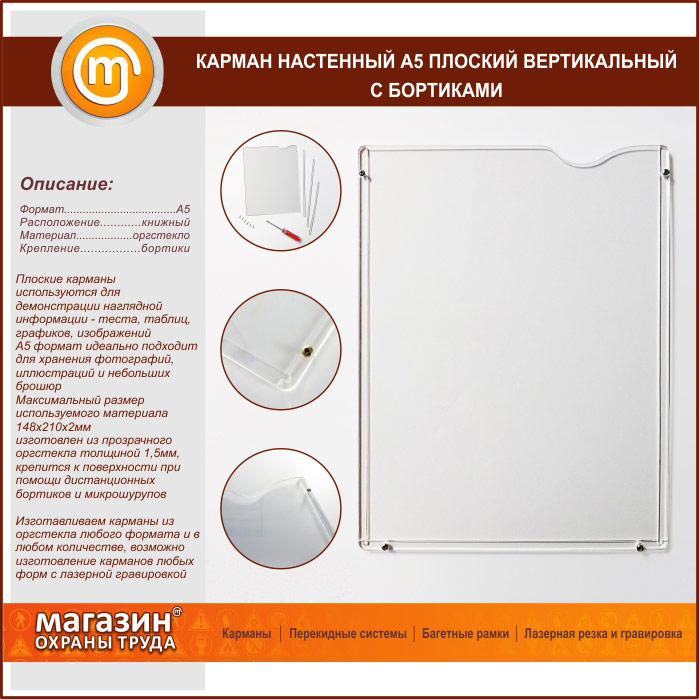 Карман настенный А5 плоский вертикальный с бортиками в Иркутске купить