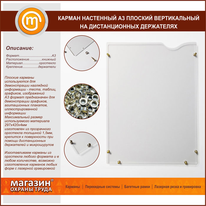Карман настенный А3 плоский вертикальный на дистанционных держателях в Иркутске купить