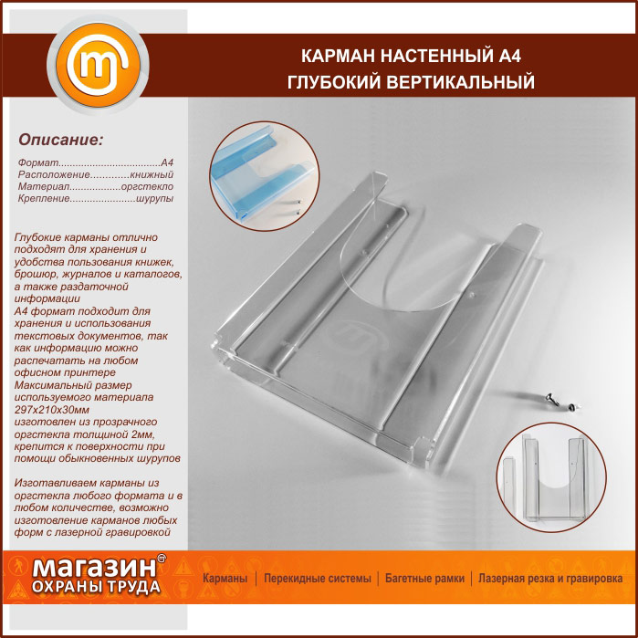 Карман настенный А4 объемный вертикальный в Иркутске купить