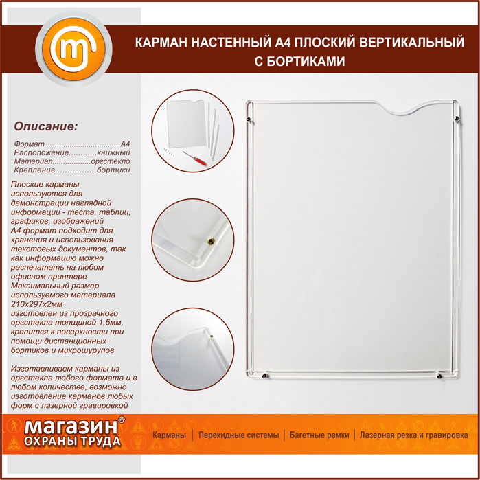 Карман настенный А4 плоский вертикальный с бортиками в Иркутске купить