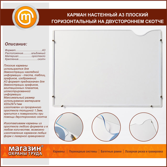 Карман настенный А3 плоский горизонтальный на двустороннем скотче в Иркутске купить