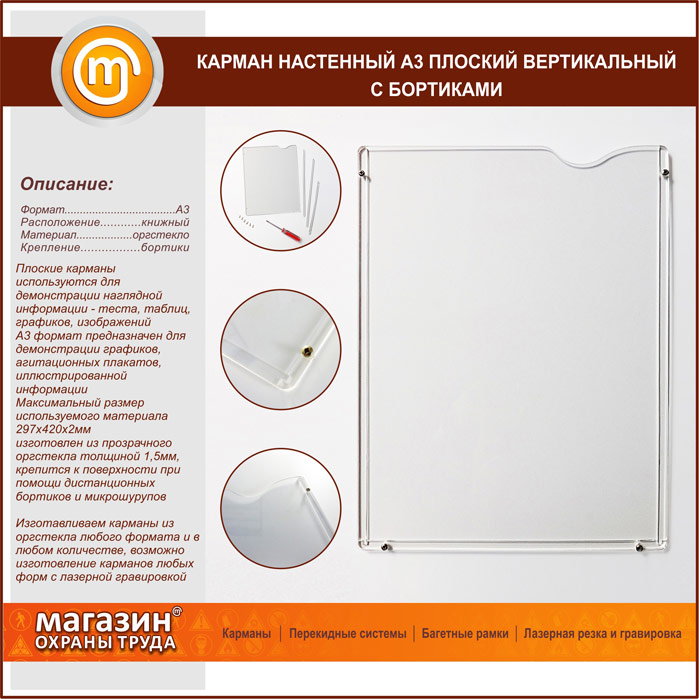 Карман настенный А3 плоский вертикальный с бортиками в Иркутске купить