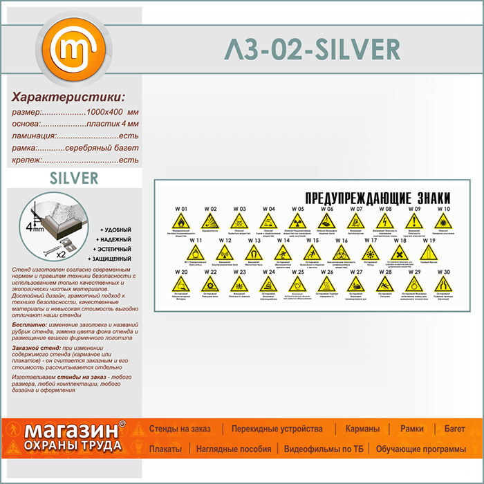 Стенд «Предупреждающие знаки» (LZ-02-SILVER) в Иркутске купить