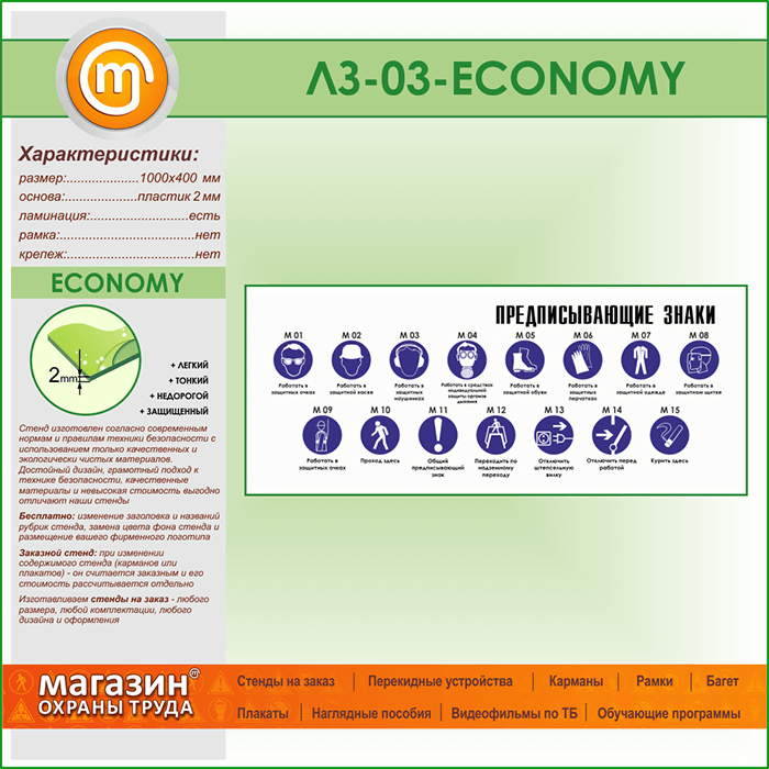 Стенд «Предписывающие знаки» (LZ-03-ECONOMY) в Иркутске купить