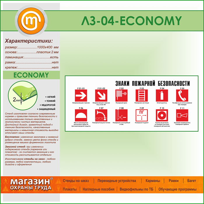 Стенд «Знаки пожарной безопасности» (LZ-04-ECONOMY) в Иркутске купить