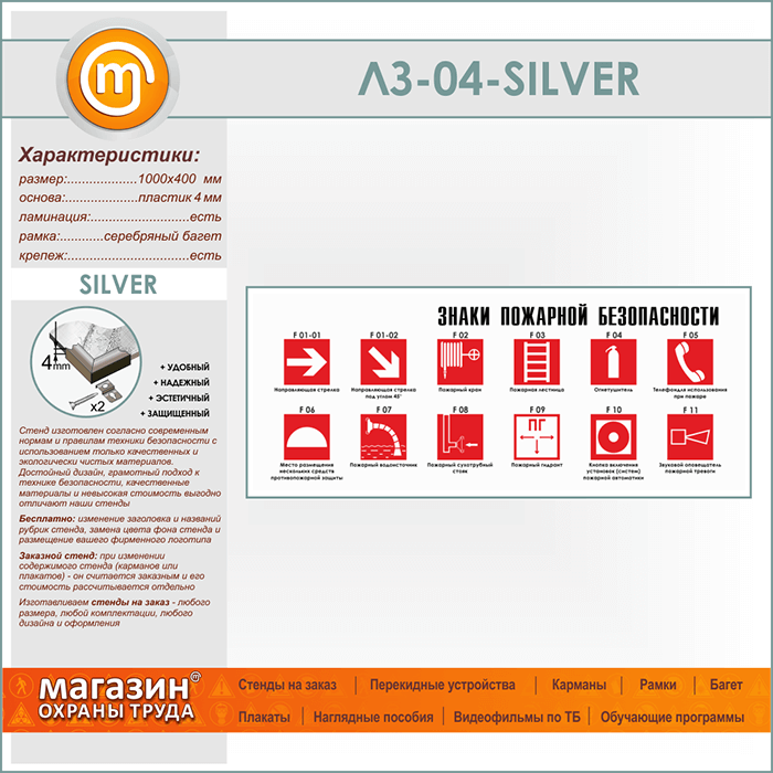 Стенд «Знаки пожарной безопасности» (LZ-04-SILVER) в Иркутске купить