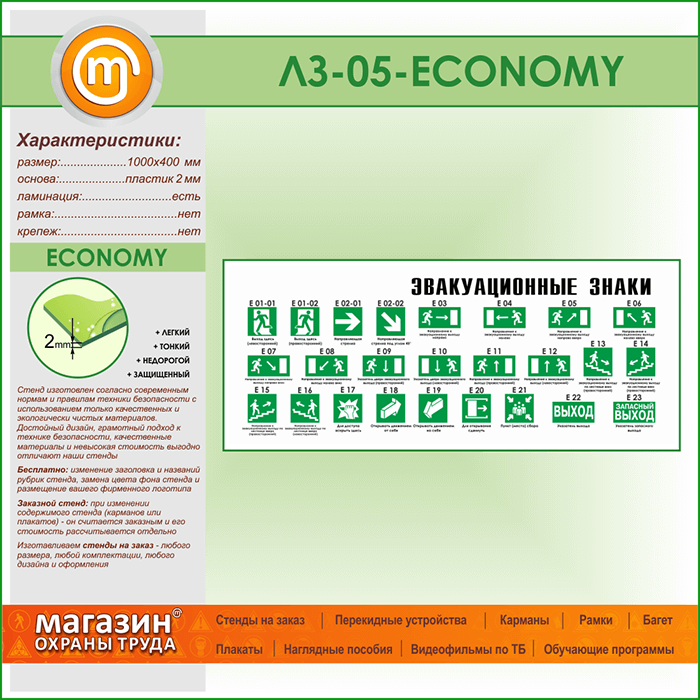 Стенд «Эвакуационные знаки» (LZ-05-ECONOMY) в Иркутске купить