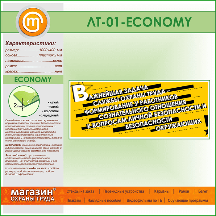 Лозунг «Важнейшая задача службы охраны труда...» (LT-01-ECONOMY) в Иркутске купить