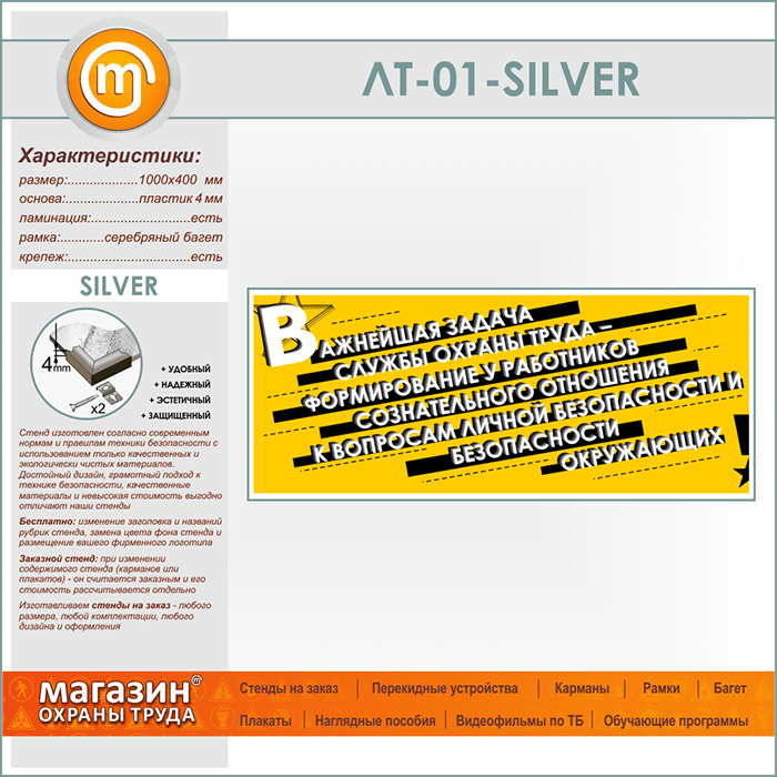 Лозунг «Важнейшая задача службы охраны труда...» (LT-01-SILVER) в Иркутске купить