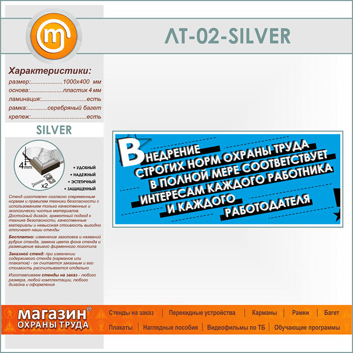 Лозунг «Внедрение строгих норм охраны труда...» (LT-02-SILVER) в Иркутске купить