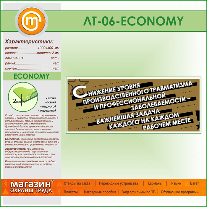 Лозунг «Снижение уровня производственного травматизма...» (LT-06-ECONOMY) в Иркутске купить