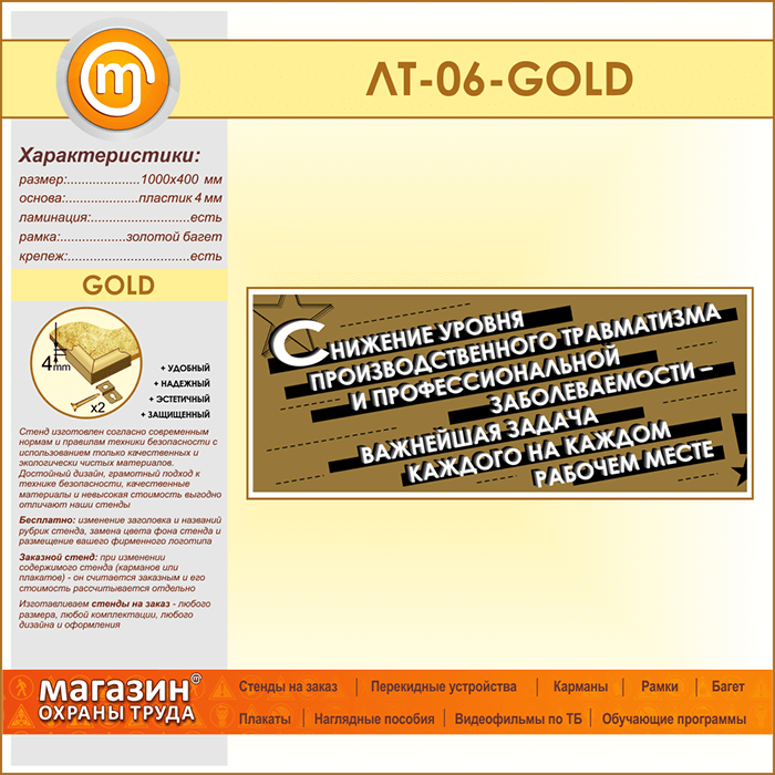 Лозунг «Снижение уровня производственного травматизма...» (LT-06-GOLD) в Иркутске купить