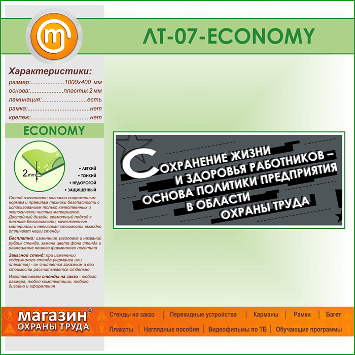 Лозунг «Сохранение жизни и здоровья работников...» (LT-07-ECONOMY) в Иркутске купить
