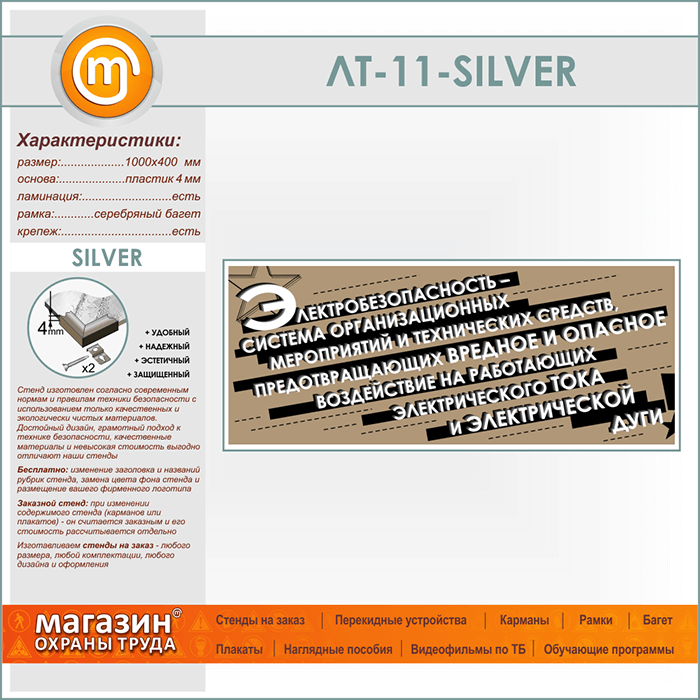 Лозунг «Электробезопасность - система мероприятий...» (LT-11-SILVER) в Иркутске купить