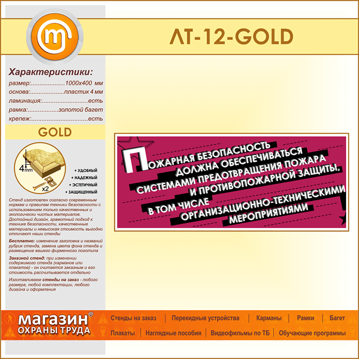 Лозунг «Пожарная безопасность должна обеспечиваться...» (LT-12-GOLD) в Иркутске купить