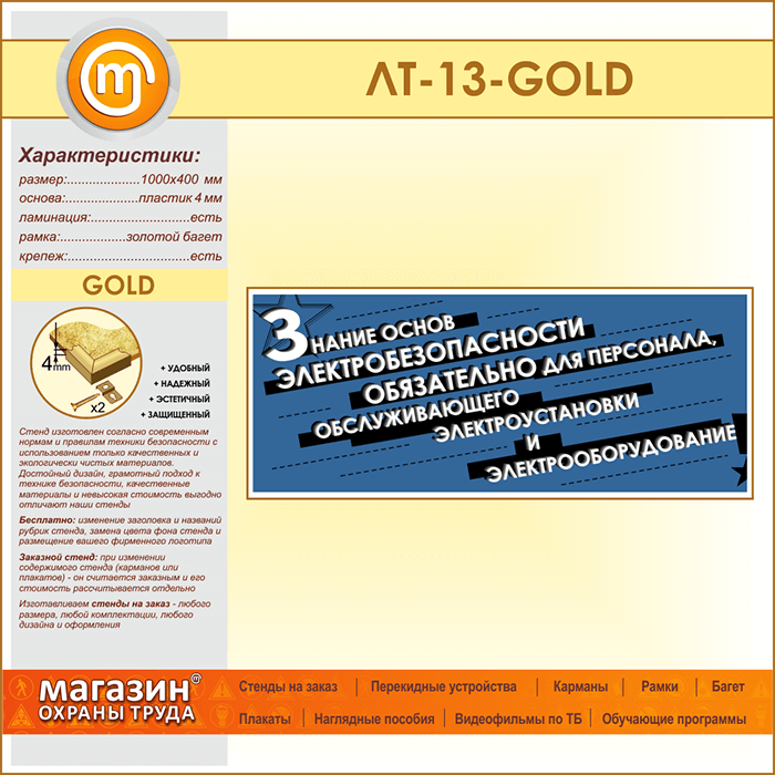 Лозунг «Знание основ электробезопасности обязательно...» (LT-13-GOLD) в Иркутске купить