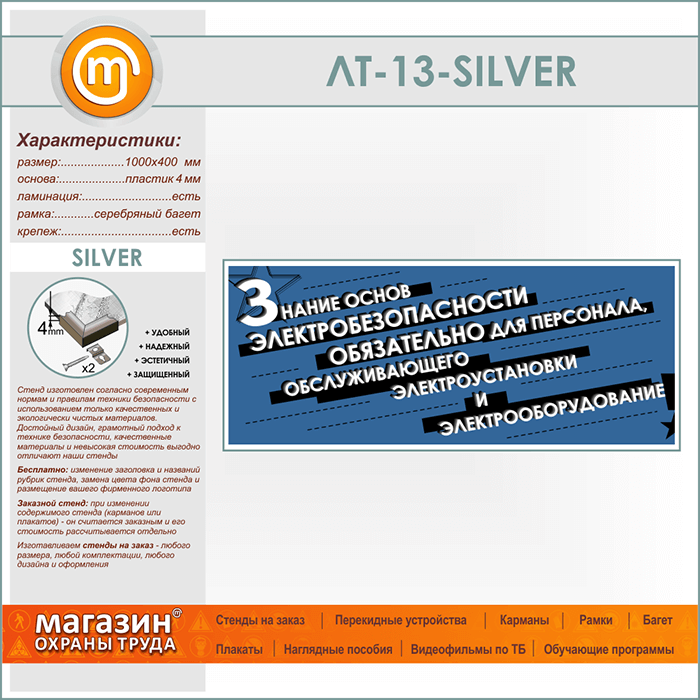 Лозунг «Знание основ электробезопасности обязательно...» (LT-13-SILVER) в Иркутске купить