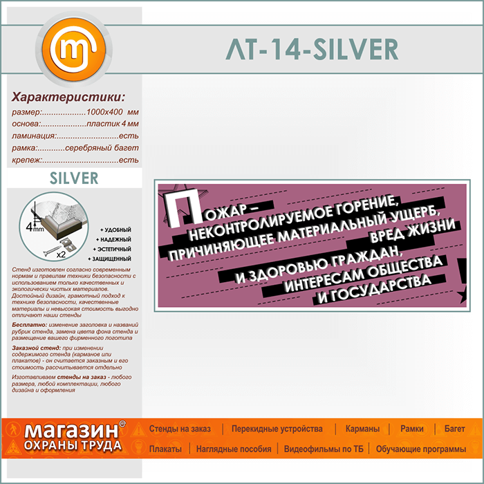 Лозунг «Пожар - неконтроллируемое горение...» (LT-14-SILVER) в Иркутске купить