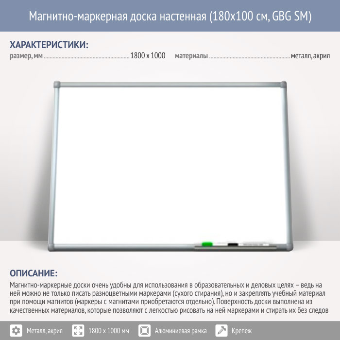 Магнитно-маркерная доска настенная (180x100 см, GBG SM) в Иркутске купить