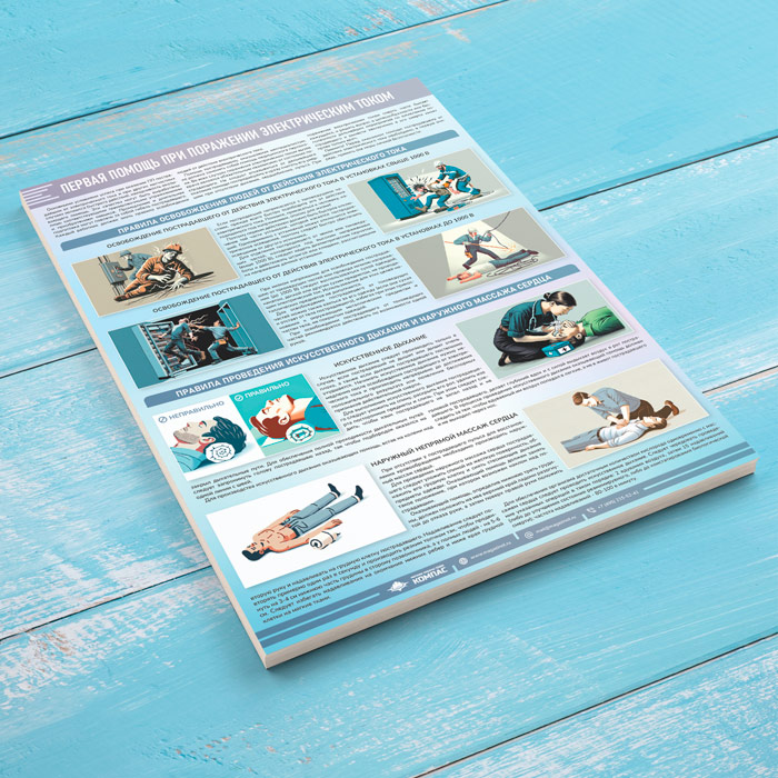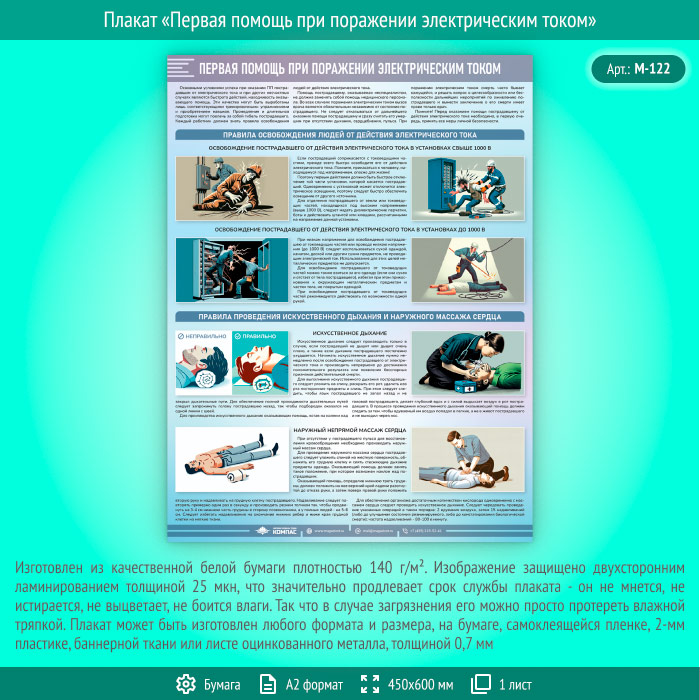Плакат «Первая помощь при поражении электрическим током» (М-122, ламинированная бумага, А2, 1 лист) в Иркутске купить