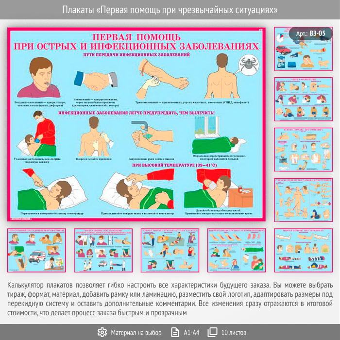 Плакаты «Первая помощь при чрезвычайных ситуациях» (ВЗ-05, 10 листов) в Иркутске купить
