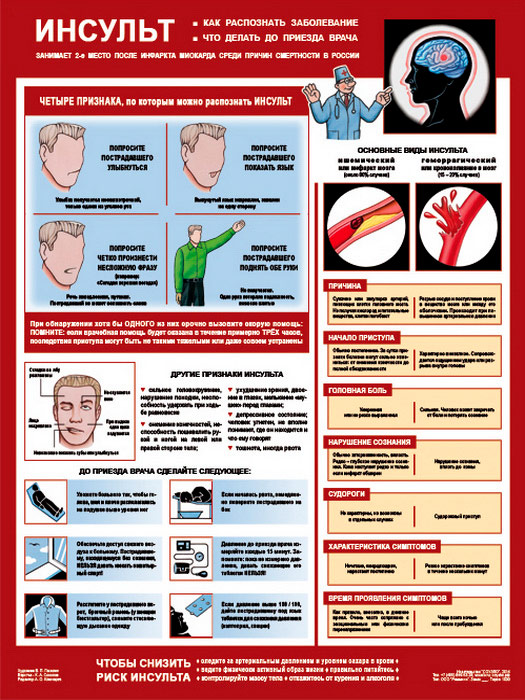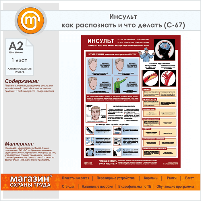 Плакат «Инсульт - как распознать и что делать» (С-67, ламинированная бумага, А2, 1 лист) в Иркутске купить