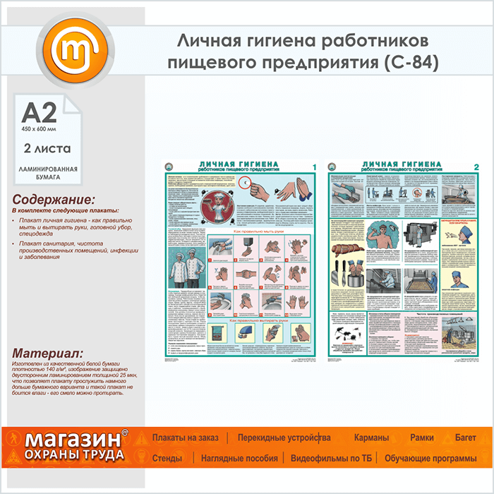 Плакаты «Личная гигиена работников пищевого предприятия» (С-84, ламинированная бумага, А2, 2 листа) в Иркутске купить