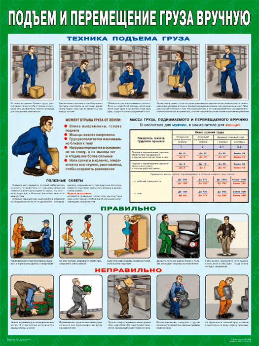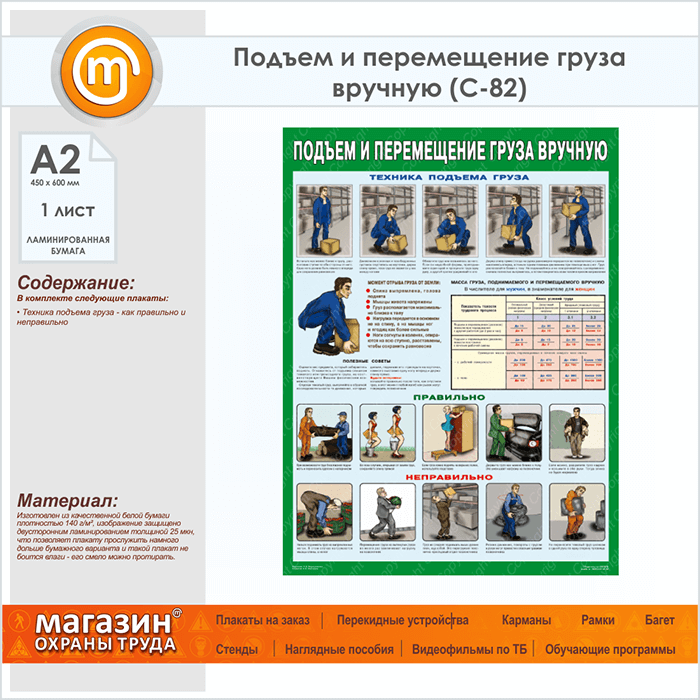 Плакат «Правила перемещения грузов вручную» (С-82, ламинированная бумага, А2, 1 лист) в Иркутске купить