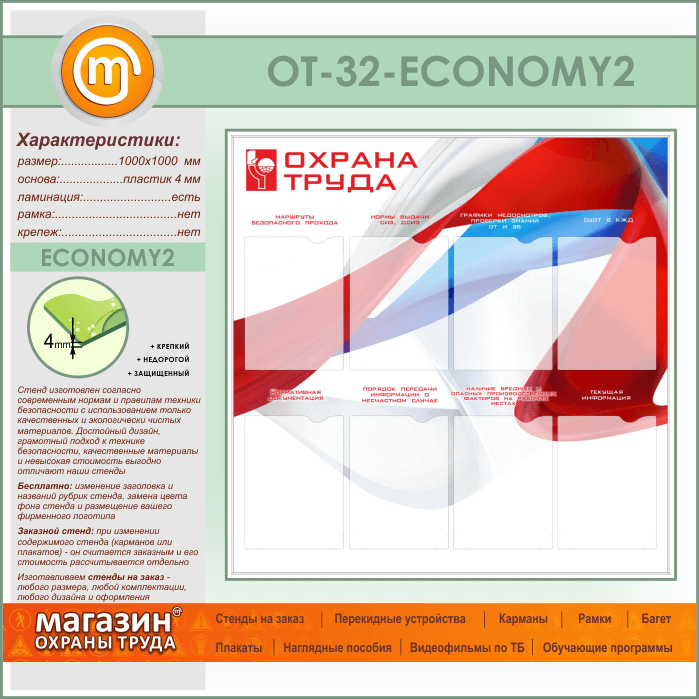 Стенд «Охрана труда» с 8 карманами (OT-32-ECONOMY2) в Иркутске купить