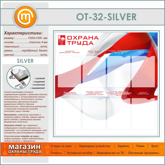 Стенд «Охрана труда» с 8 карманами (OT-32-SILVER) в Иркутске купить