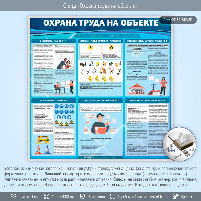 Стенд «Охрана труда на объекте» (OT-34-SILVER) в Иркутске купить