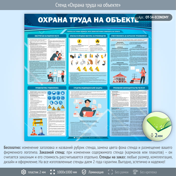Стенд «Охрана труда на объекте» (OT-34-ECONOMY) в Иркутске купить