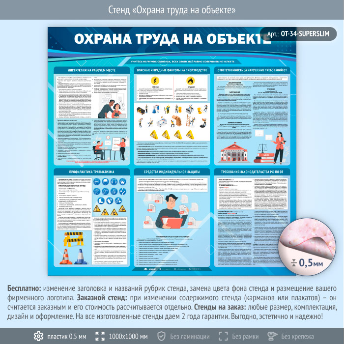 Стенд «Охрана труда на объекте» (OT-34-SUPERSLIM) в Иркутске купить