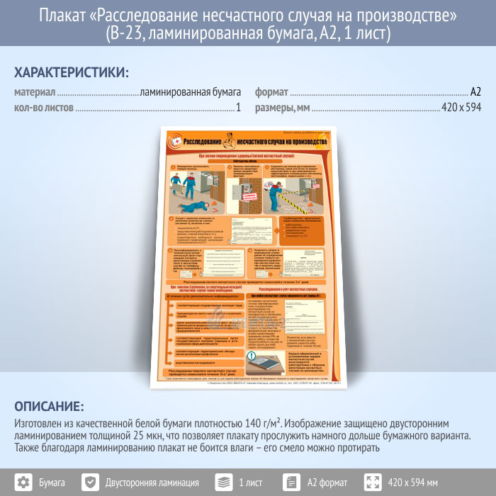 Плакат «Расследование несчастного случая на производстве» (В-23, ламинированная бумага, А2, 1 лист) в Иркутске купить