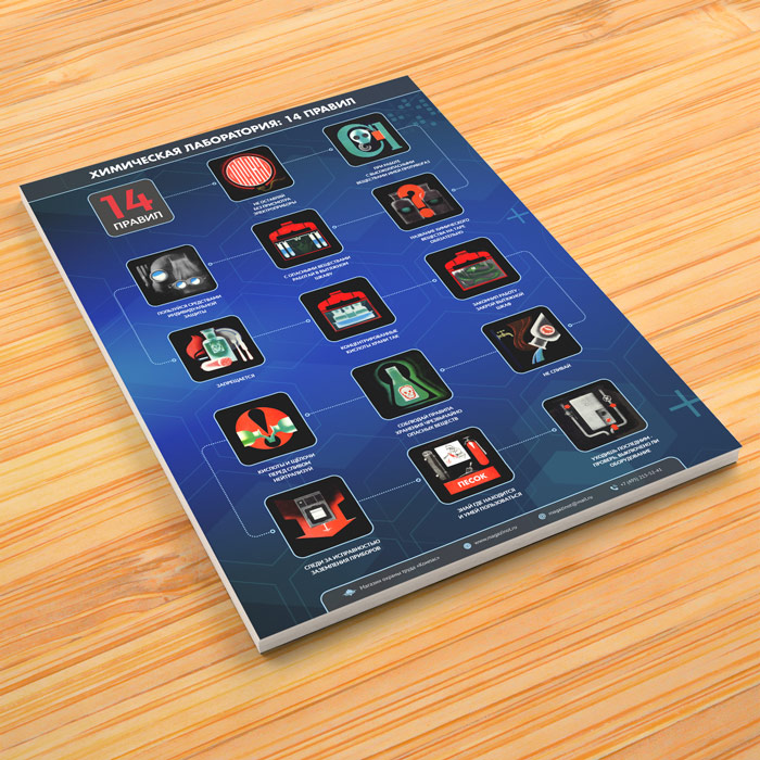 Плакат «Химическая лаборатория. 14 правил элементарной промышленной безопасности» (М-110, ламинированная бумага, А2, 1 лист) в Иркутске купить