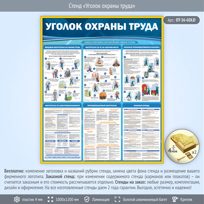 Стенд «Уголок охраны труда» (OT-36-GOLD) в Иркутске купить
