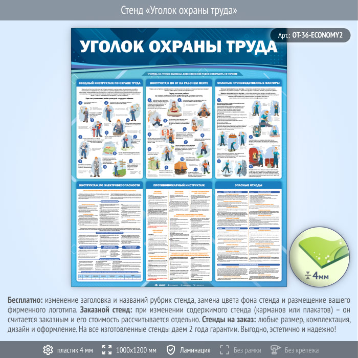 Стенд «Уголок охраны труда» (OT-36-ECONOMY2) в Иркутске купить