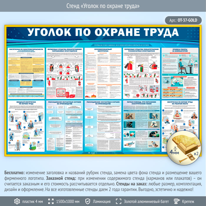 Стенд «Уголок по охране труда» (OT-37-GOLD) в Иркутске купить