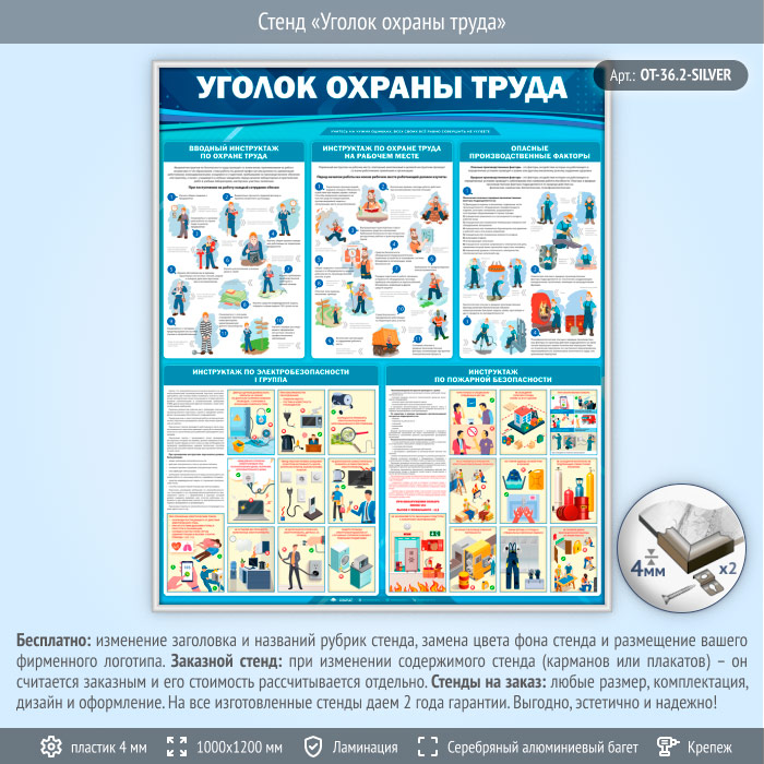 Стенд «Уголок охраны труда» (OT-36.2-SILVER) в Иркутске купить