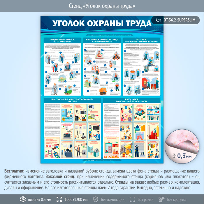 Стенд «Уголок охраны труда» (OT-36.2-SUPERSLIM) в Иркутске купить