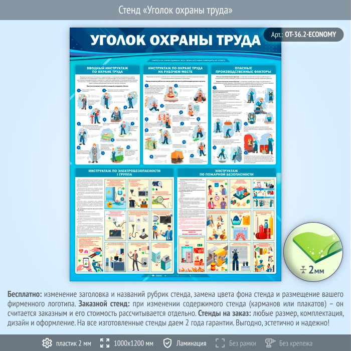 Стенд «Уголок охраны труда» (OT-36.2-ECONOMY) в Иркутске купить