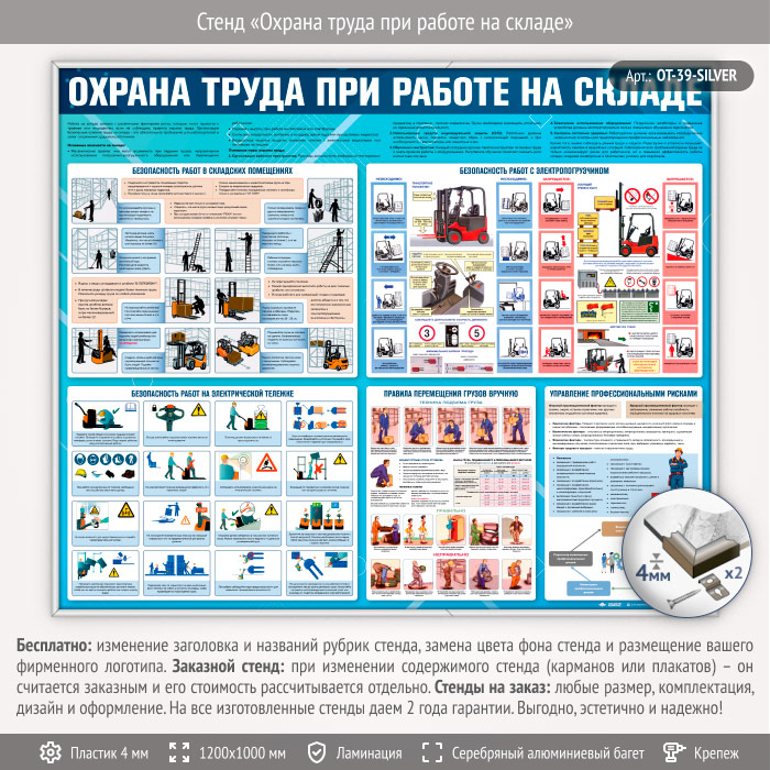 Стенд «Охрана труда при работе на складе» (OT-39-SILVER) в Иркутске купить