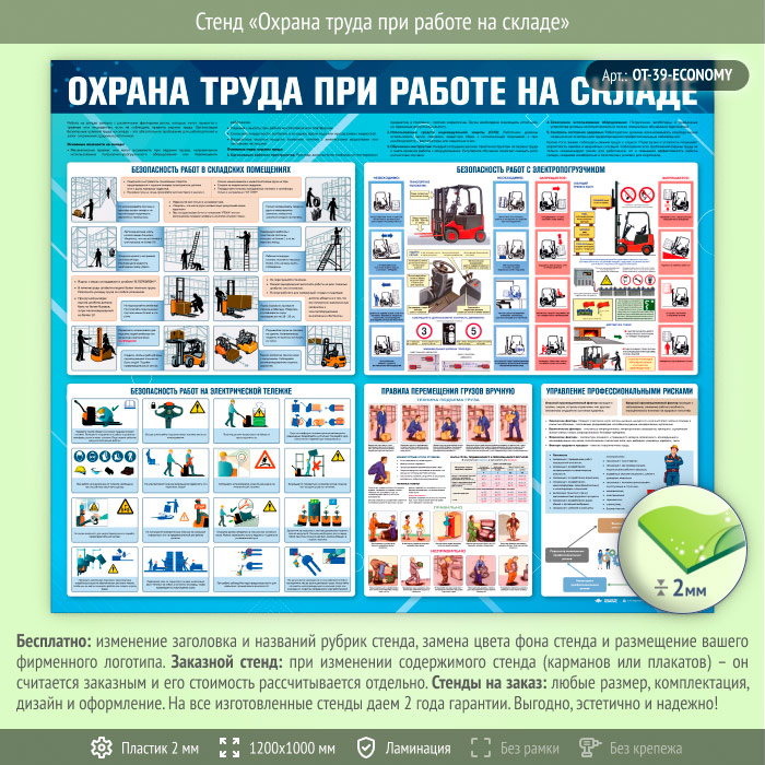 Стенд «Охрана труда при работе на складе» (OT-39-ECONOMY) в Иркутске купить