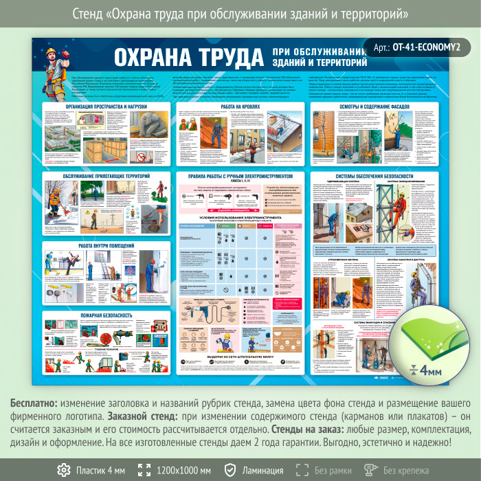 Стенд «Охрана труда при обслуживании зданий и территорий» (OT-41-ECONOMY2) в Иркутске купить