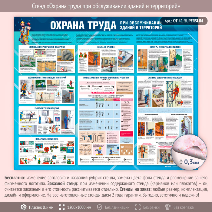 Стенд «Охрана труда при обслуживании зданий и территорий» (OT-41-SUPERSLIM) в Иркутске купить