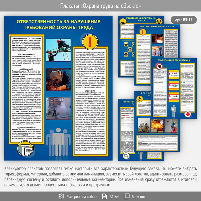 Плакаты «Охрана труда на объекте» (ВЗ-17, 6 листов) в Иркутске купить