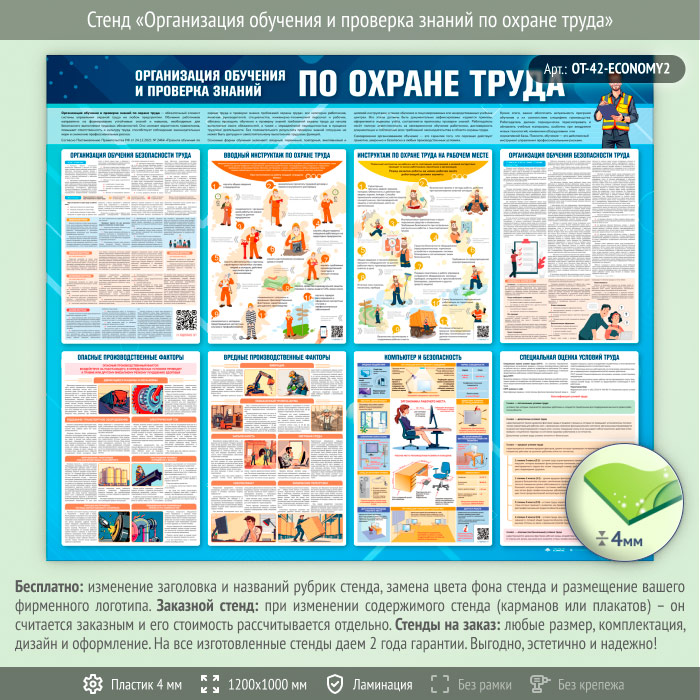 Стенд «Организация обучения и проверка знаний по охране труда» (OT-42-ECONOMY2) в Иркутске купить