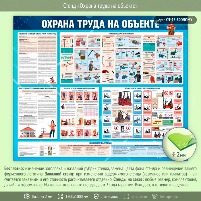 Стенд «Охрана труда на объекте» (OT-43-ECONOMY) в Иркутске купить