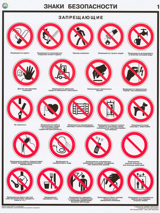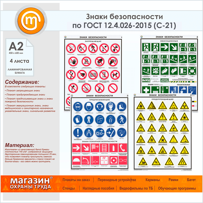 Плакаты «Знаки безопасности по ГОСТ 12.4.026-2015» (С-21, ламинированная бумага, А2, 4 листа) в Иркутске купить