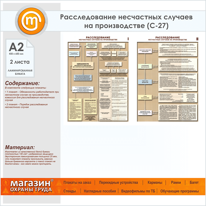 Плакаты «Расследование несчастных случаев на производстве» (С-27, ламинированная бумага, А2, 2 листа) в Иркутске купить